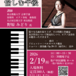 2026年2月1日 / 最終更新日時 : 2026年2月1日 nohara-d 未分類 令和7年度 生涯学習講座 ピアノレクチャーコンサート「名曲を愉しむ午後」 2026.2.19(木) 14:00開演(13:30開場) 松戸市民劇場ホール プログラム ドビュッシー:ベルガマスク組曲 レスピーギ:リュートのための古風な舞曲とアリア 第3集 P 172(arr.M.NOHARA) […]