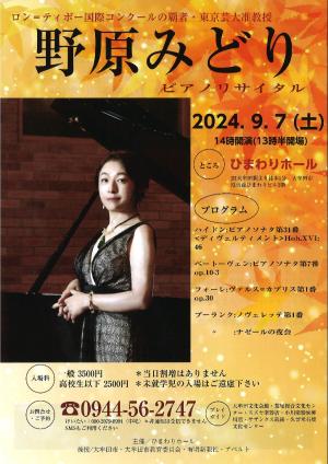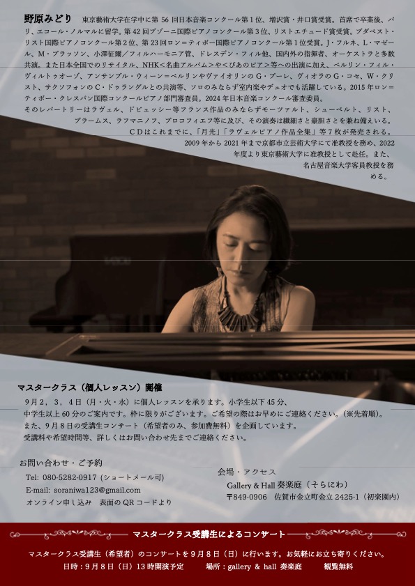 野原みどりピアノリサイタル&マスタークラス in 九州