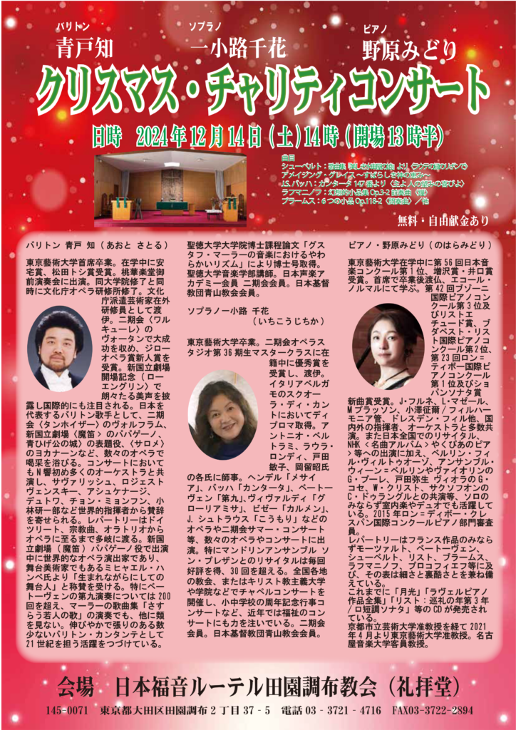 田園調布ルーテル教会 クリスマスチャリティーコンサート